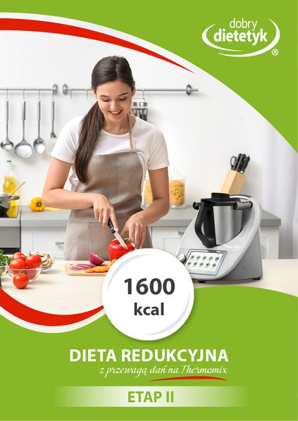II etap diety redukcyjnej z daniami opracowanymi na Thermomix. Program żywieniowy został opracowany na życzenie ogromnej rzeszy klientów, którzy niezwykle pozytywnie ocenili pierwszą część. Podczas niniejszego opracowania uwzględniono większość posiłków z wykorzystaniem sprzętu typu thermomixer, co znacznie ułatwi stosowanie planu żywieniowego osobom, które posiadają tego typu urządzenie. Jednocześnie dania zastosowane w diecie są szybkie i proste. Dieta zaplanowana jest na 4 posiłki dziennie i zawiera wszystkie niezbędne dla zdrowia składniki odżywcze, odpowiednią ilość witamin z grupy B, witaminy C i E, nienasyconych kwasów tłuszczowych, błonnika pokarmowego czy magnezu. Stosowanie diety pozwoli uzyskać zdrową redukcję masy ciała.