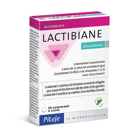Zawartość składników odżywczych w maksymalnej dziennej porcji (2 tabletki): Bakterie kwasu mlekowego: 2.109 jtk* Witamina D3: 3 μg (60% RWS**) Witamina C: 48 mg (60% RWS**) * jtk – jednostek tworzących kolonie ** RWS – Referencyjna wartość spożycia mieszanka bakterii kwasu mlekowego (Lactobacillus paracasei LA802), substancje wypełniające (fruktooligosacharydy, inulina z cykorii, celuloza mikrokrystaliczna), witamina C (kwas L-askorbinowy), witamina D3 (cholekalcyferol), naturalny aromat miętowy, substancja przeciwzbrylająca (sole magnezowe kwasów tłuszczowych), substancja słodząca (sukraloza)