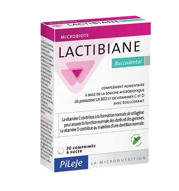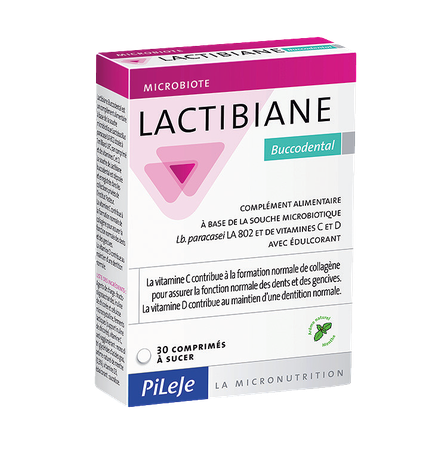 Zawartość składników odżywczych w maksymalnej dziennej porcji (2 tabletki): Bakterie kwasu mlekowego: 2.109 jtk* Witamina D3: 3 μg (60% RWS**) Witamina C: 48 mg (60% RWS**) * jtk – jednostek tworzących kolonie ** RWS – Referencyjna wartość spożycia mieszanka bakterii kwasu mlekowego (Lactobacillus paracasei LA802), substancje wypełniające (fruktooligosacharydy, inulina z cykorii, celuloza mikrokrystaliczna), witamina C (kwas L-askorbinowy), witamina D3 (cholekalcyferol), naturalny aromat miętowy, substancja przeciwzbrylająca (sole magnezowe kwasów tłuszczowych), substancja słodząca (sukraloza)